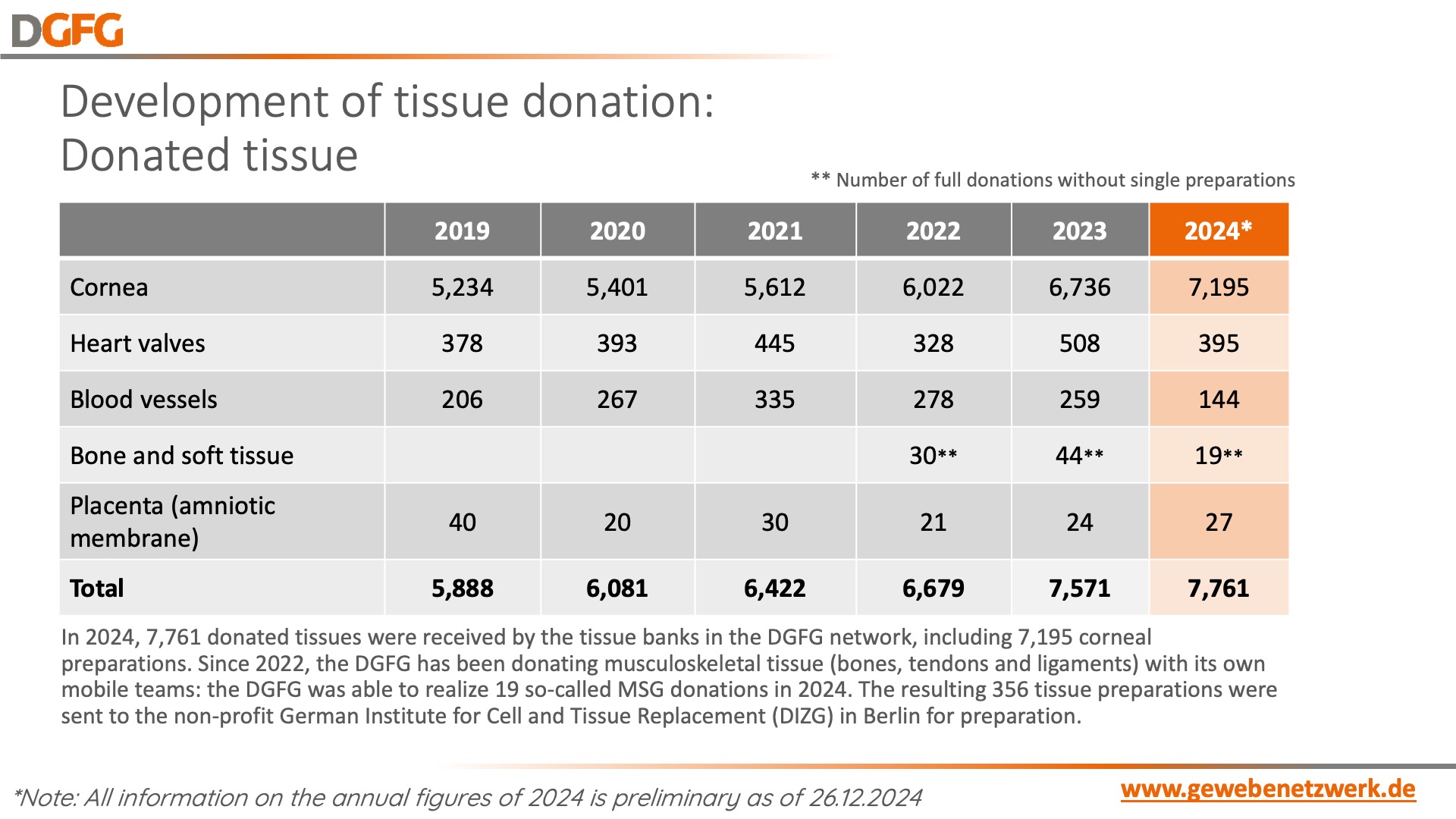 Figures on tissue donation 2024 in the network of the German Society for Tissue Transplantation (DGFG)
